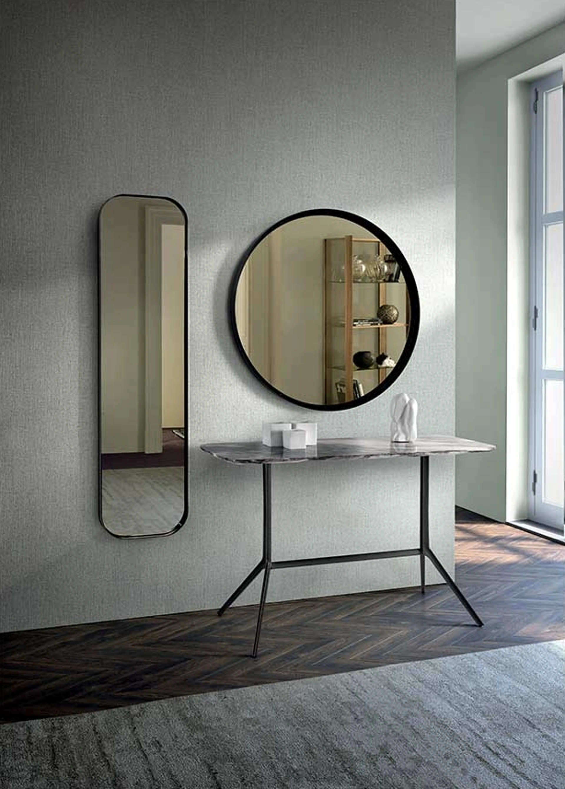 Le composizioni di alto valore estetico del marchio Pacini e Cappellini personalizzano gli interni con colore e stile, ricreando peculiari atmosfere arredative. Particolarmente versatili e plurifunzionali, i Complementi moderni in metallo assolvono a funzioni diversificate: ultimano le qualità pratiche e l'estetica del locale. In negozio potrai vedere dal vivo l'eccellenza dei modelli di specchi moderni in metallo del brand, proprio come questa proposta in foto. Specchio Ron di Pacini e Cappellini in metallo: darà carattere e fascino a un locale arredato con mobili ed elementi accessori dai richiami moderni. Complementi e specchi personalizzano l'arredo di casa, riempiendo lo spazio in maniera utile e rendendolo accogliente e di grande valore estetico.