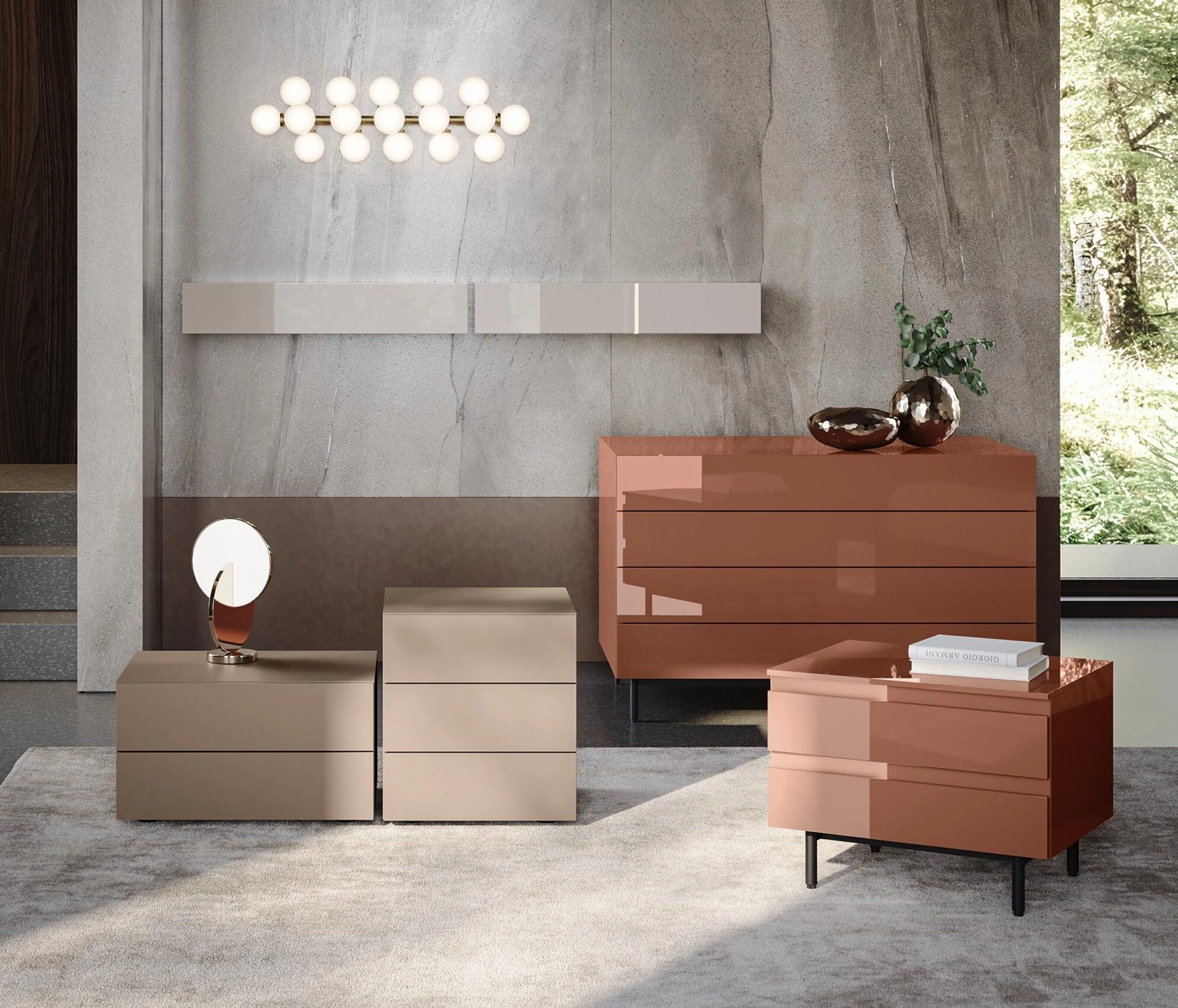 Vuoi progettare la zona notte con Comodini e mobili con cassetti di Morassutti? Ti presentiamo il modello Live Gruppo Notte in laccato opaco per spazi moderni.