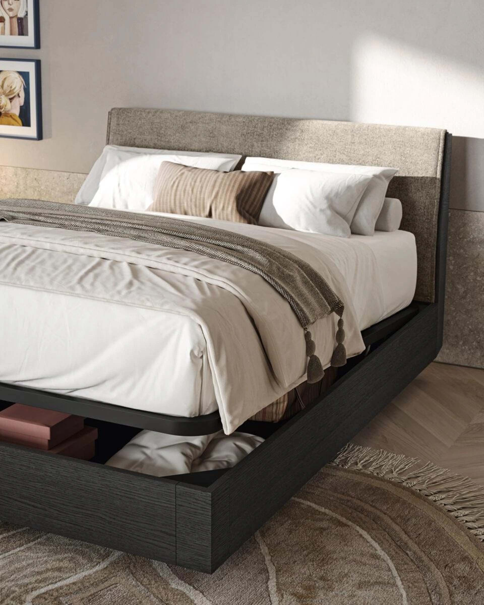 Se cerchi letti matrimoniali con contenitore, ecco qui il modello Nautilo in legno per valorizzare la zona notte.